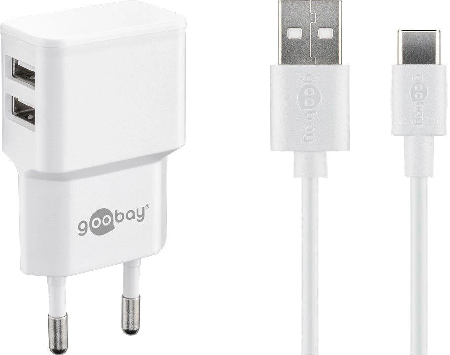 Goobay Netzteil mit 2x USB-Anschlüssen USB-C Kabel 1 m Weiß